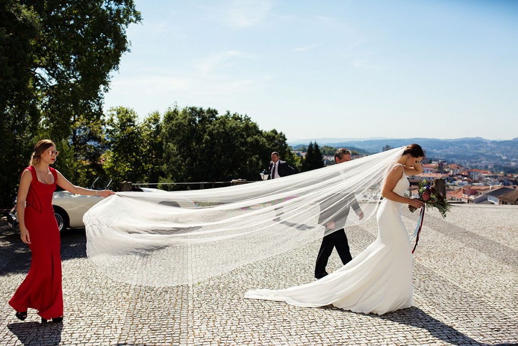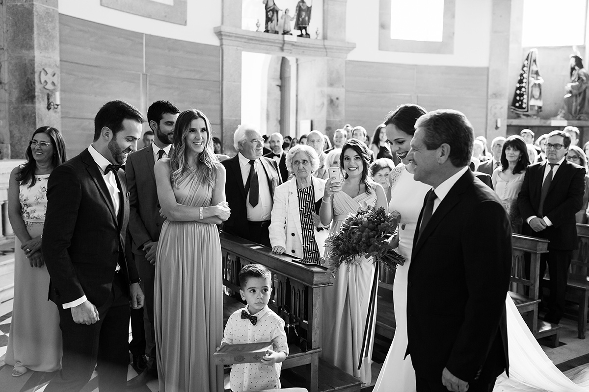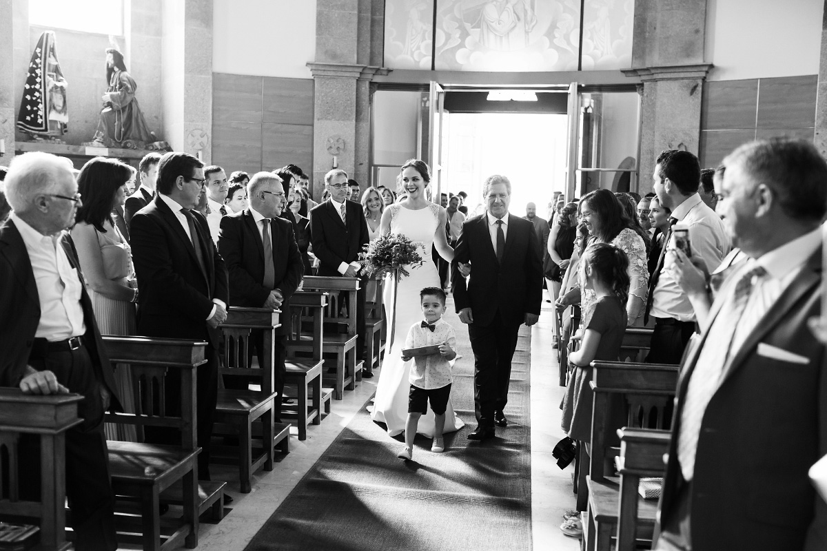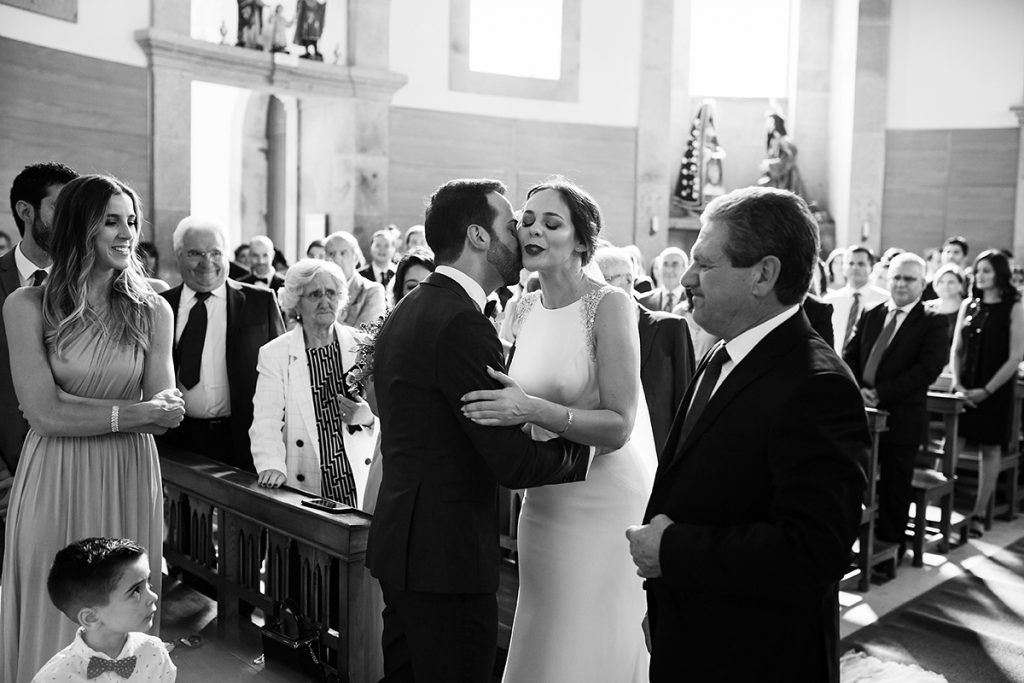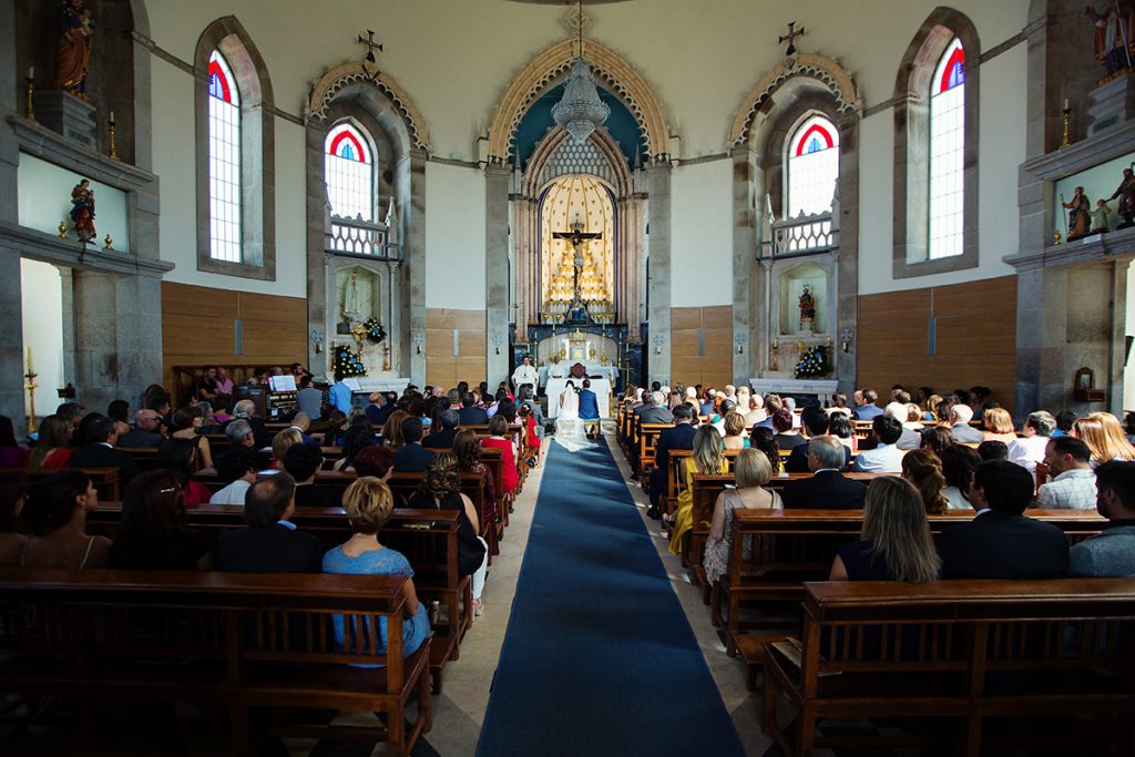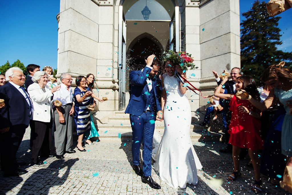 A Ana e o Miguel estavam assim prontos para caminharem em direção ao seu objetivo, tornarem-se marido & mulher, para começar uma nova etapa das suas vidas. A celebração religiosa foi no Sameiro, em Penafiel. Que emoção foi ver a noiva a entrar por aquela porta de sorriso rasgado, a um passo de se entregar àquele que escolheu para partilhar o resto de toda a sua vida. Foi com um beijo enternecedor e emotivo que o Miguel a recebeu no altar. No final da cerimónia, quiseram seguir a tradição que nunca decepciona, o arroz para a saída da igreja.