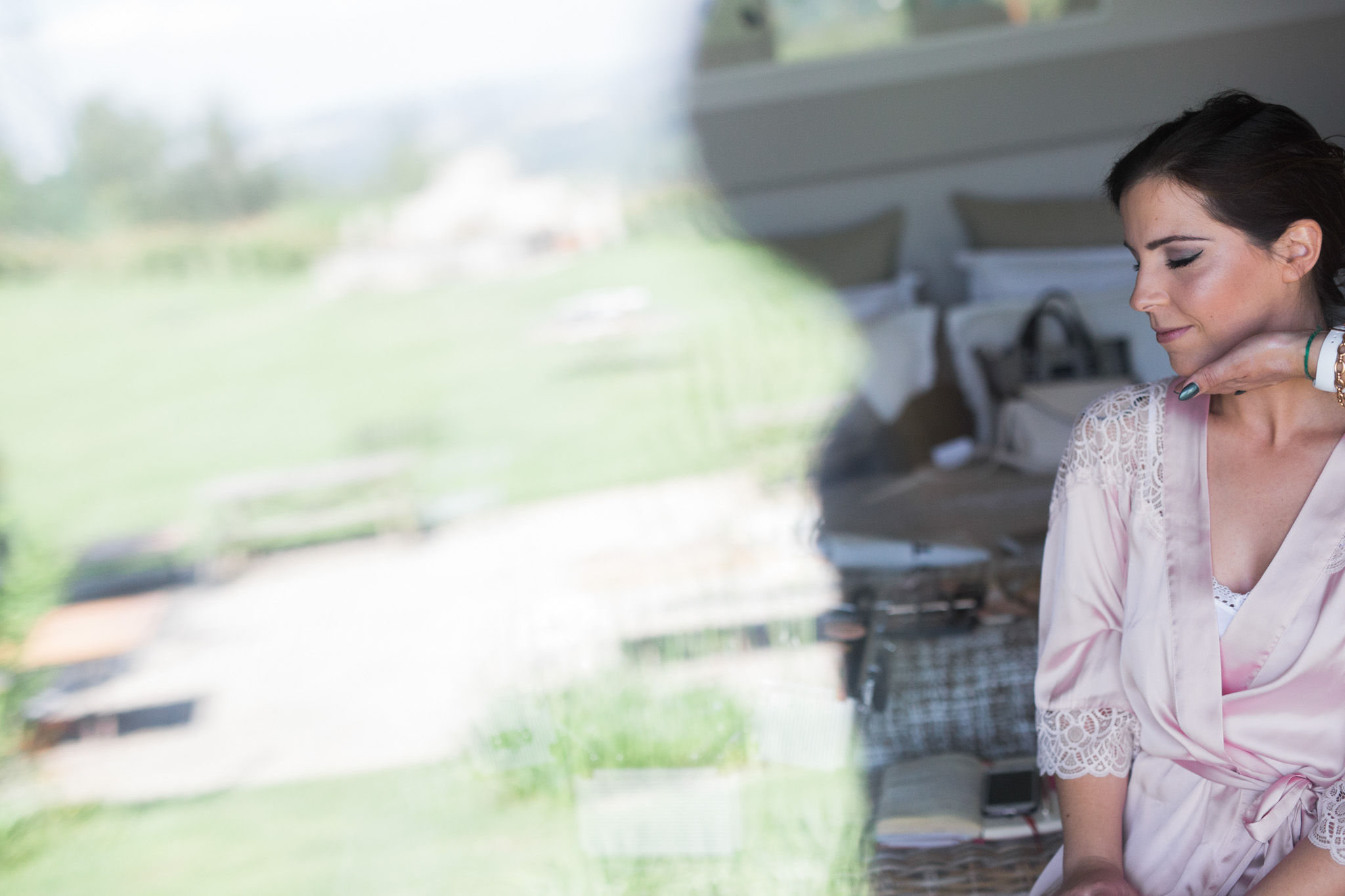 maquilhagem de noiva está pronta, o penteado de noiva está feito, o vestido de noiva já está vestido, os sapatos de noiva calçados, os acessórios e véu colocados, o ramo de noiva está na mão. A Cláudia está finalmente pronta para descer e ir ter com o Filipe que a espera ansiosamente.