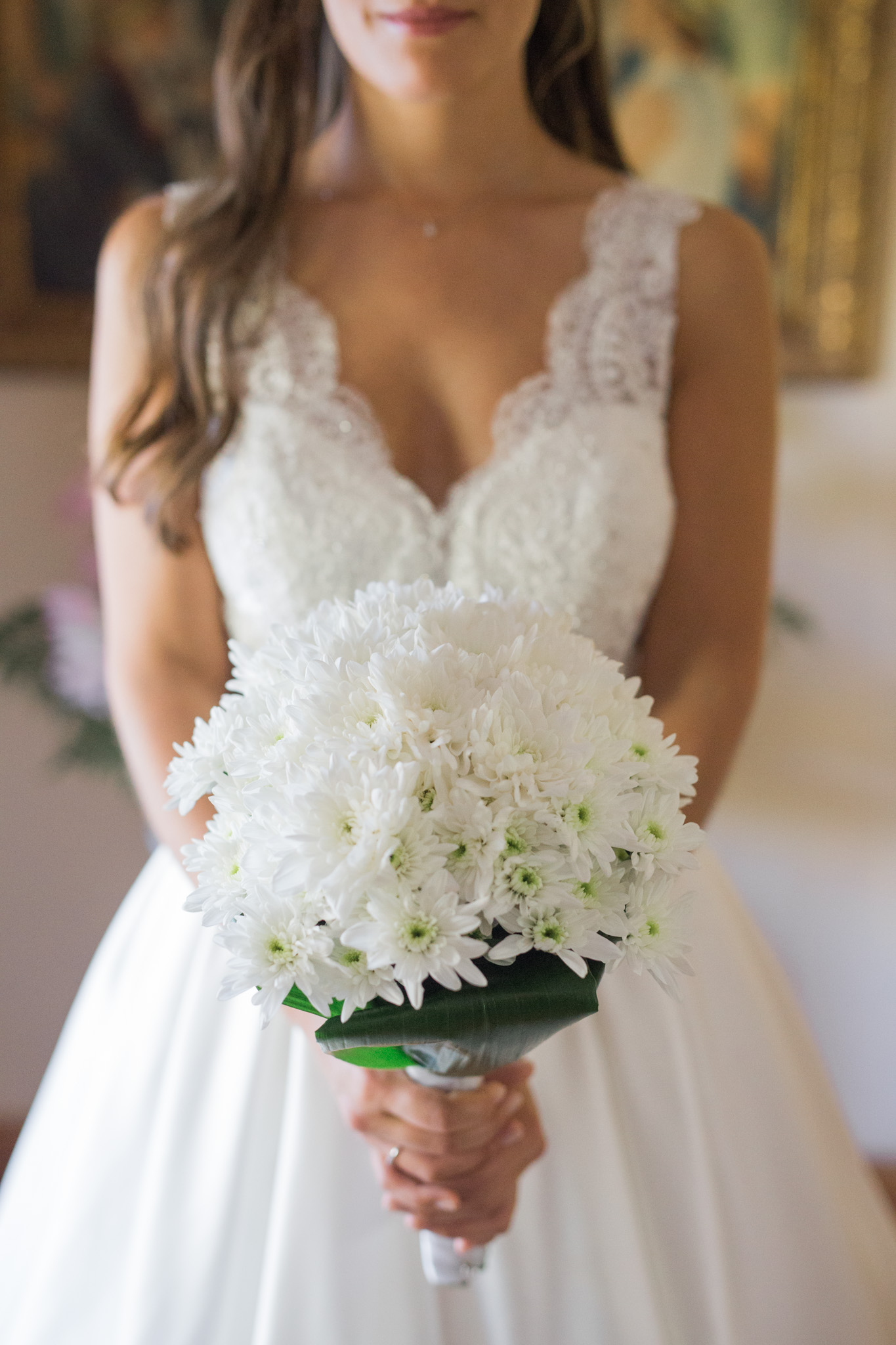 Vestido clássico – para um vestido de noiva clássico, de princesa, as flores do bouquet de noiva deverão ser mais clássicas, de uma só variedade, com cores suaves e delicadas.