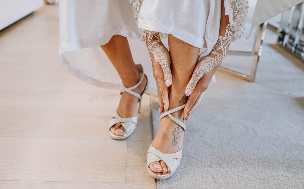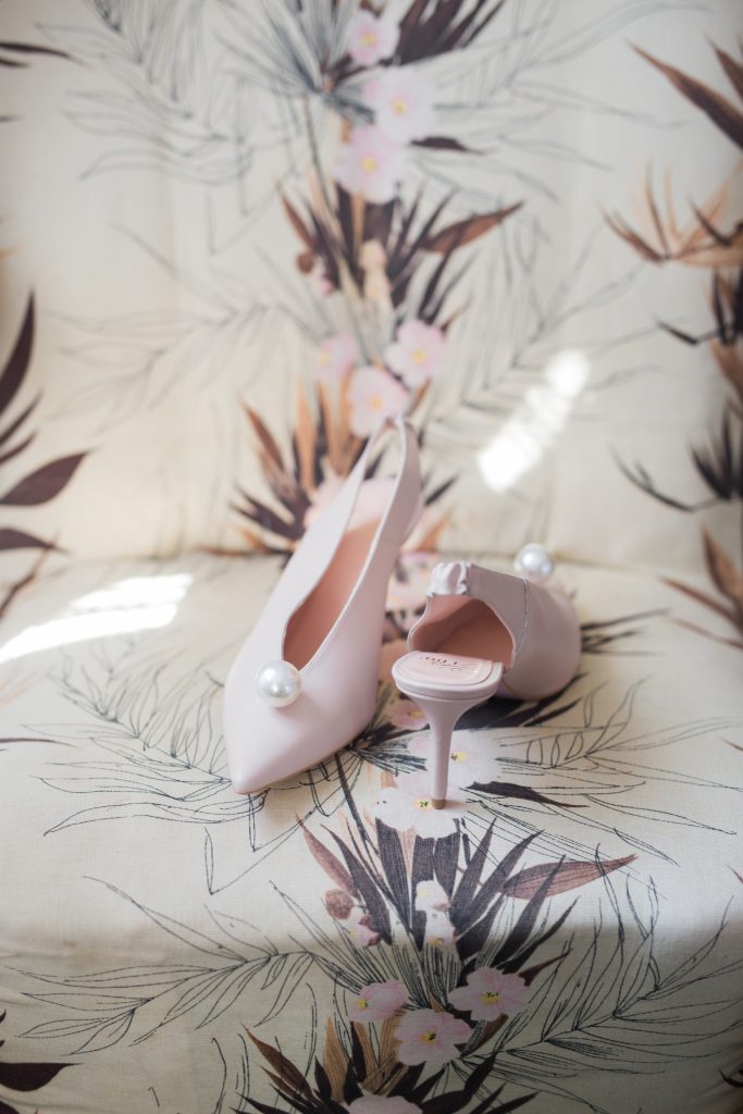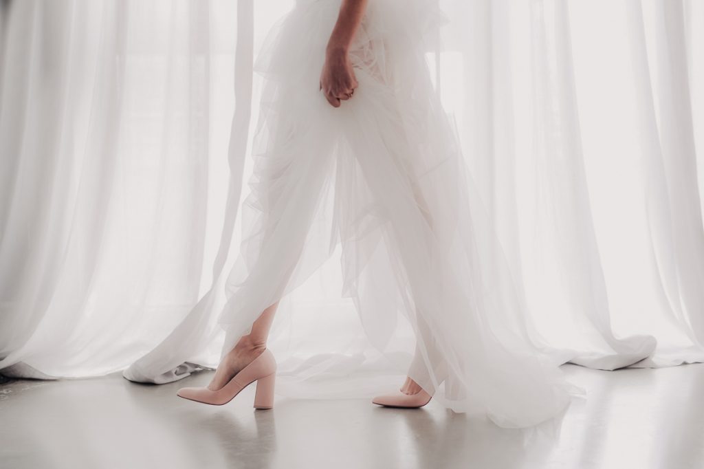 Se escolherem um vestido muito detalhado, com rendas, tules ou brilhos, sapatos lisos ou com pormenores mais discretos combinarão melhor. Por outro lado, quando se tem um vestido de noiva mais simples, minimalista ou sem bordados, escolher uns sapatos mais arrojados não caíra nada mal. Podem personalizar os sapatos ao vosso gosto, uma cor diferente do tradicional branco/pérola ou aplicar uma peça diferente, assim como escrever frases ou dedicatórias nas solas.