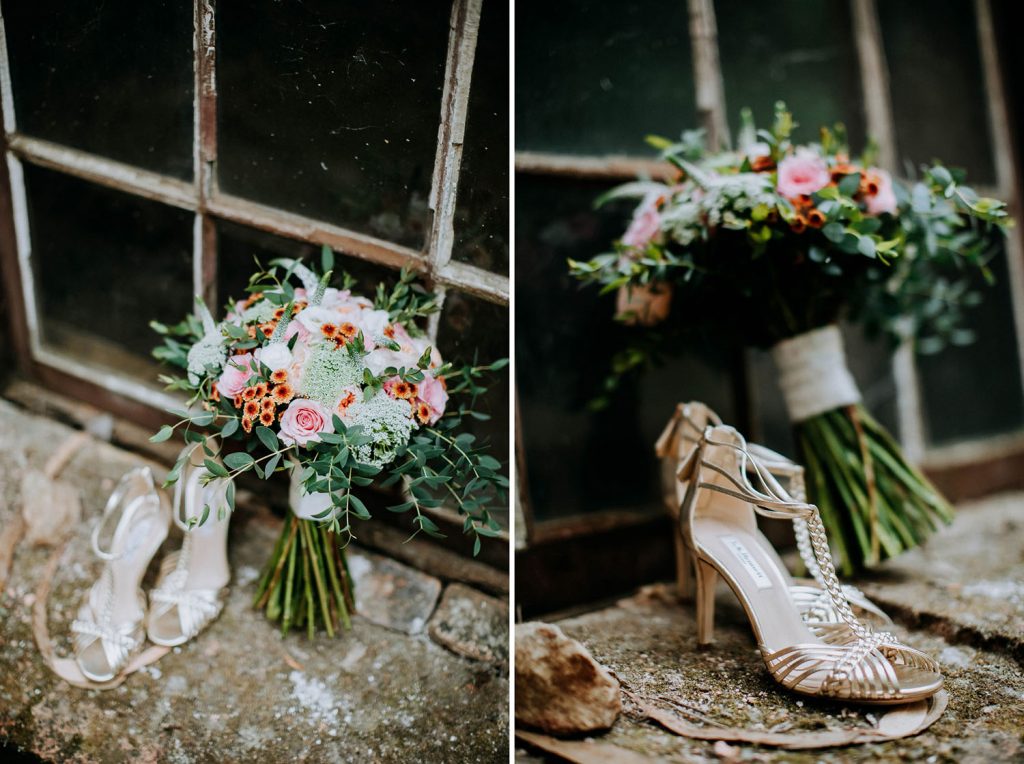 Para aquelas noivas menos tradicionais e que não se importam de arriscar, uma outra possibilidade é a combinação dos sapatos com a cor de determinados detalhes da noiva, como o bouquet de noiva. Por exemplo, um vestido branco pode ser acompanhado por sapatos rosa, bordeaux, preto, vermelho, amarelo, azul, roxo ou lilás, entre outros. Por outro lado, um bouquet de noiva da mesma cor dos sapatos ou com flores da mesma tonalidade, tornará o visual nupcial harmonioso.